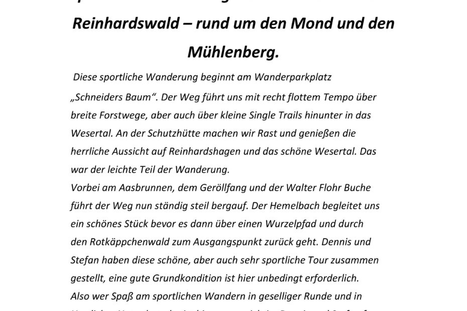Rund um den Mond & Mühlenberg Sonntag, 12. Oktober 2025 | Start: 10:30 Uhr, Wanderparkplatz „Schneiders Baum“ Eine abwechslungsreiche und sportliche Tour erwartet euch: Von… Weiterlesen »Sportliche Herbstwanderung im Reinhardswald