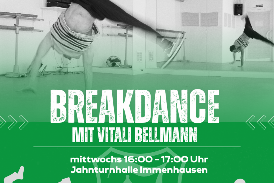Moves, Beats und richtig viel Style Jeden Mittwoch von 16:00 – 17:00 Uhr heißt es: Breakdance! Gemeinsam mit Profi-Breakdancer Vitali Bellmann lernst du zu cooler… Weiterlesen »Breakdance in der Jahnturnhalle