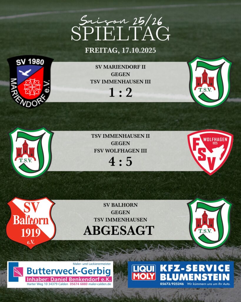 Spielberichte Seniorenfußball vom Spieltag am 17.10.2025