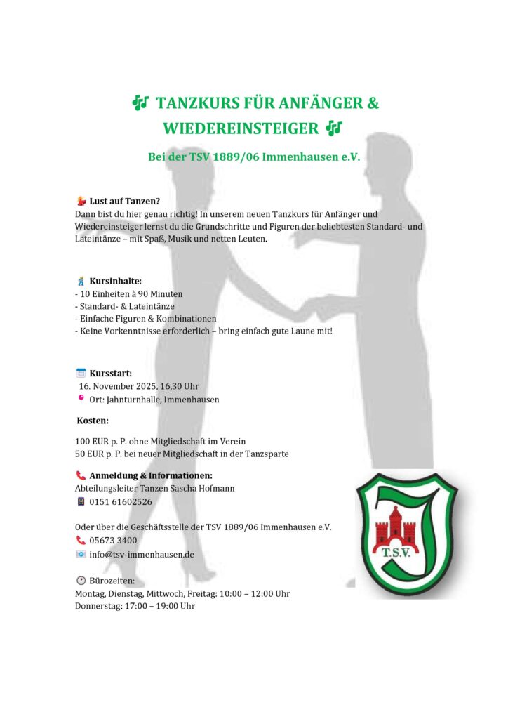 Am 2. November lädt euch die Abteilung Tanzen der TSV Immenhausen herzlich zu ihrem diesjährigen…