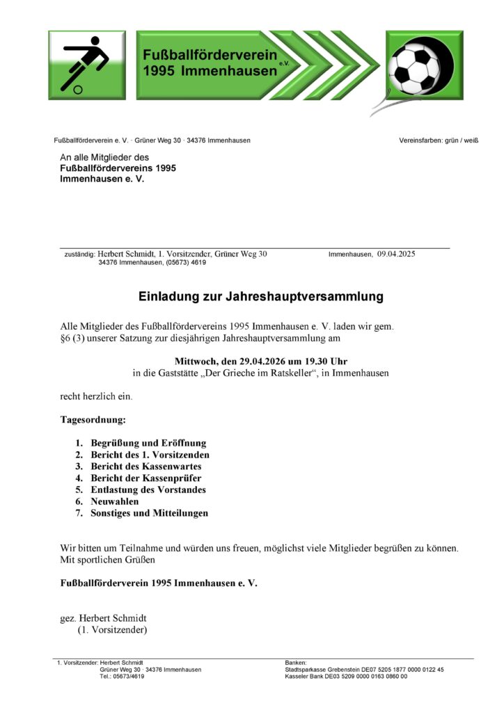 Liebe Mitglieder des Fußballfördervereins 1995 Immenhausen e. V.,