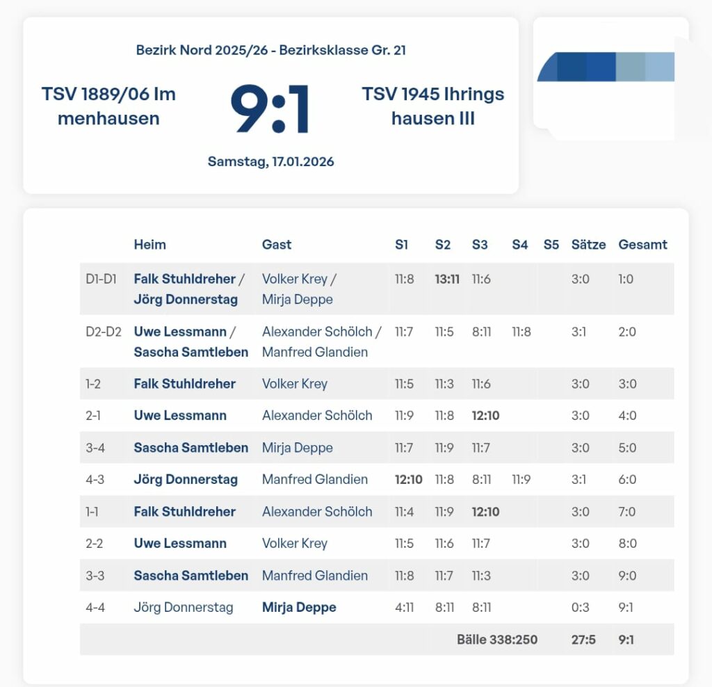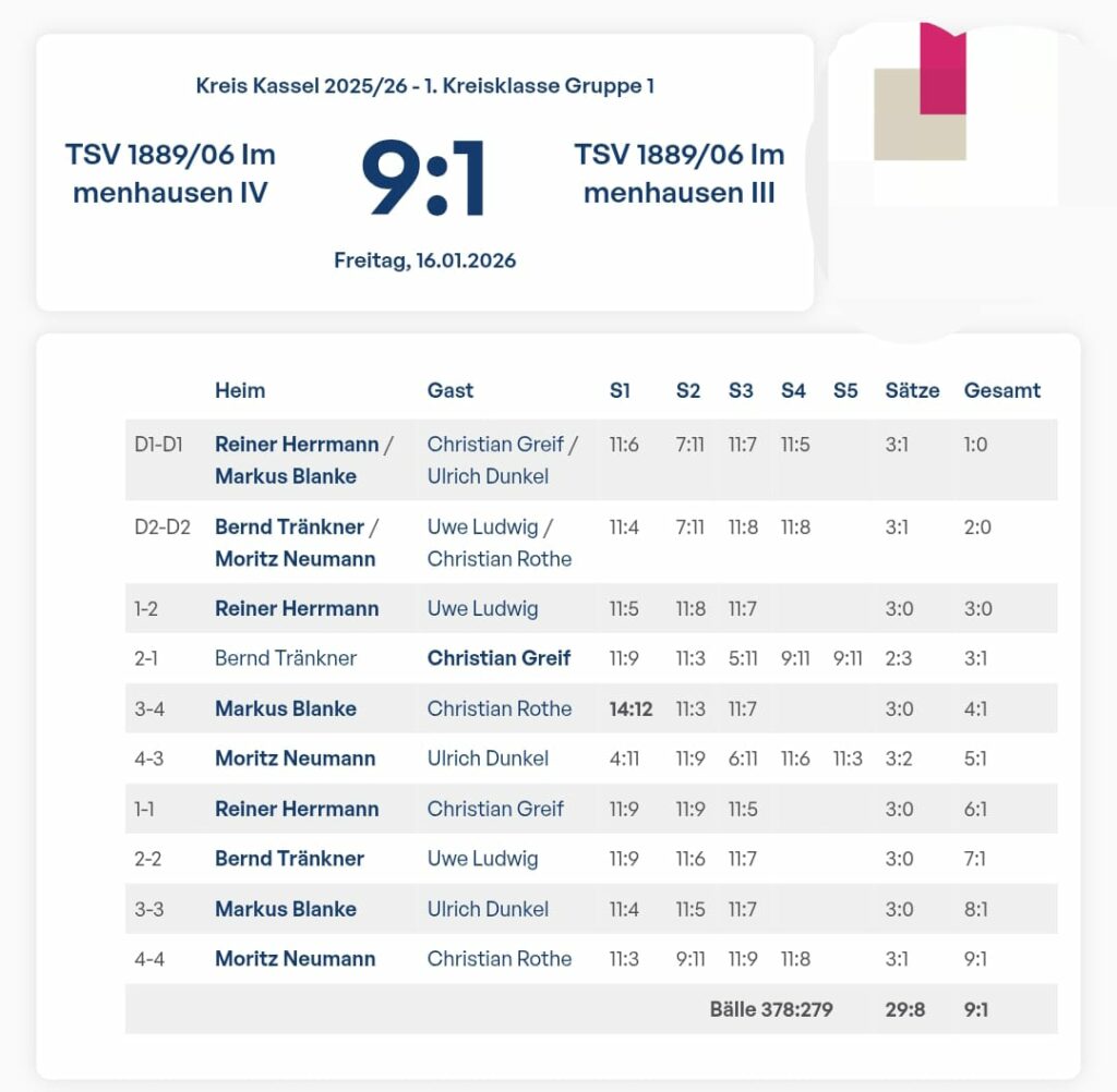 Zum Rückrundenauftakt kam es in der Kreisklasse leider erneut zu einem vereinsinternen Duell: Die vierte Mannschaft traf auf die dritte. Durch Verletzungen, Krankheitsfälle und private Verpflichtungen mussten beide Teams stark ersatzgeschwächt antreten. Unter diesen Umständen entwickelte sich eine klare Begegnung, die die Vierte am Ende souverän für sich entscheiden konnte.