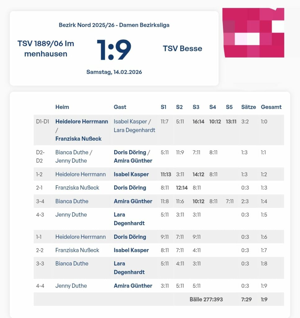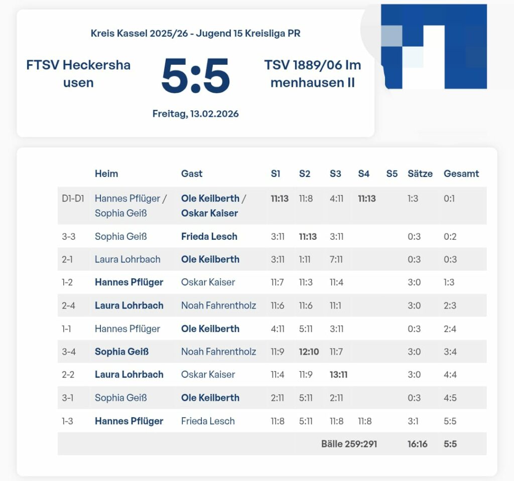 Erneut schweres Wochenende für unsere Mannschaften. Ein enges Spiel am Freitagabend unserer J15 brachte den einzigen Punkt beim Unentschieden in Heckershausen. Ein Sieg von Frieda und drei Siege von Ole im Einzel sowie das Doppel mit Oskar/Ole brachten den Punkt.