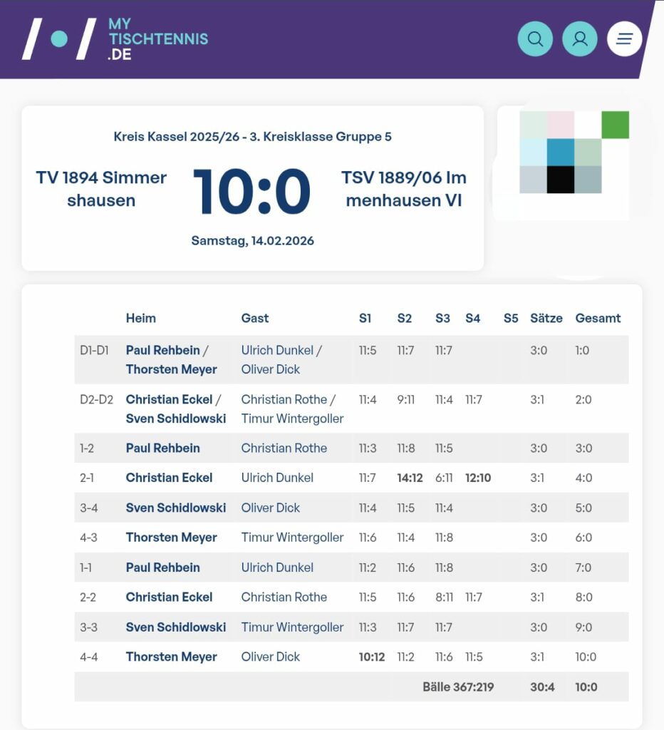 Nicht unerwähnt soll bleiben, dass die J15 am Samstag zwei Punkte „geschenkt“ bekommen hat, da unser Gegner aus Vellmar mit großen Personalproblemen zu kämpfen hat. Wir bedauern das sehr. Für Vellmar gute Besserung. Nächste Serie sehen wir uns wieder am Tisch.
