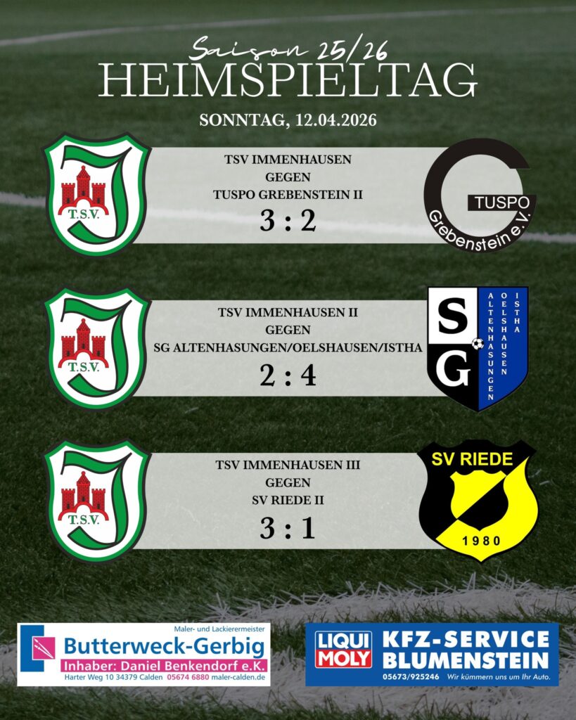 SG Altenhasungen/O./I. – TSV Immenhausen II 7:0 (4:0) Auf 7:0 folgt 0:7 für die TSV…