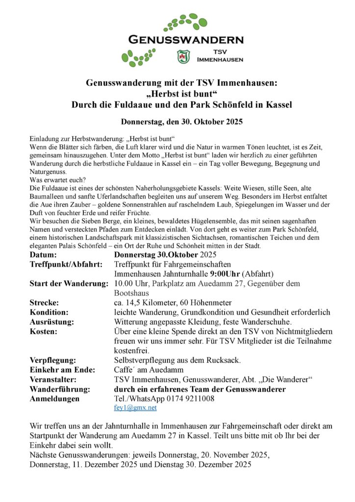 🚗 Fahrgemeinschaft ab Jahnturnhalle Immenhausen um 9:00 Uhr