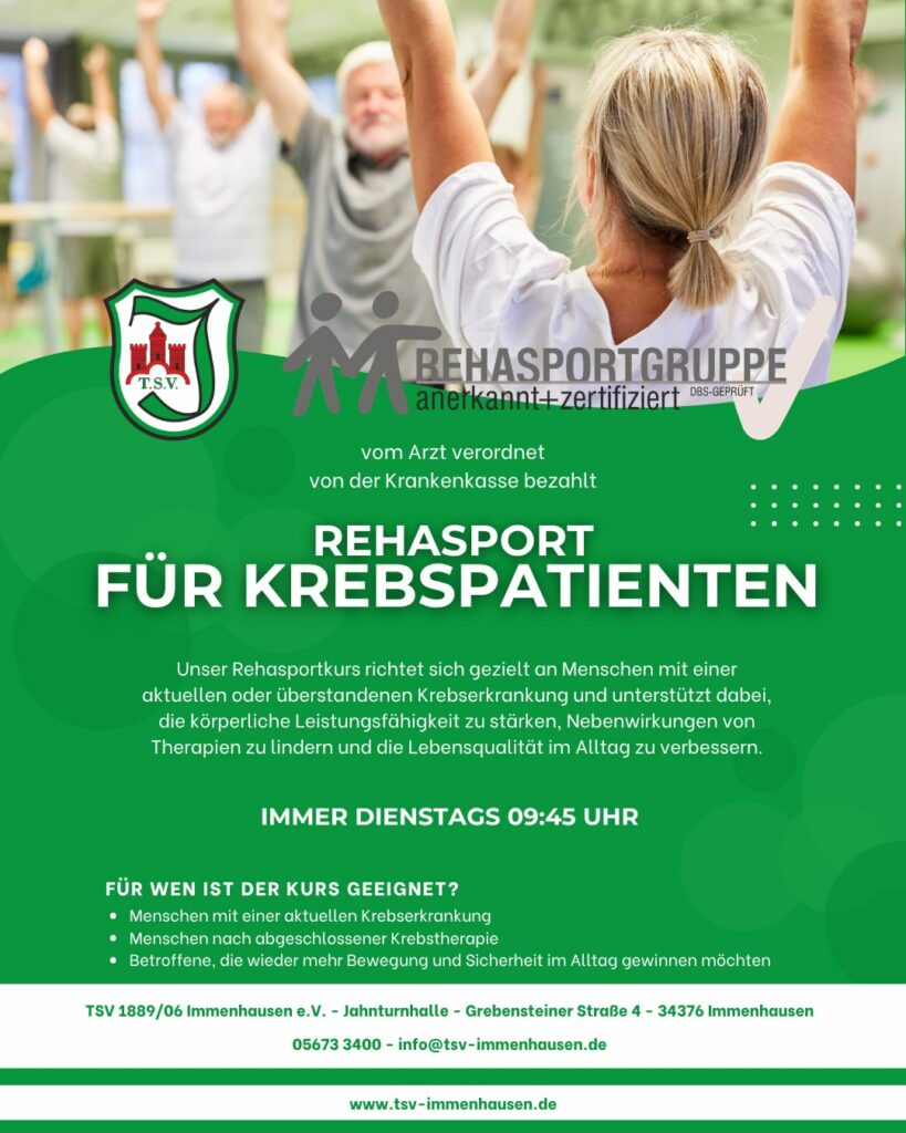 Unser Rehasportangebot richtet sich gezielt an Menschen mit einer aktuellen oder überstandenen Krebserkrankung. Ziel ist es, durch regelmäßige Bewegung die körperliche Leistungsfähigkeit zu stärken, Nebenwirkungen von Therapien zu lindern und die Lebensqualität nachhaltig zu verbessern.