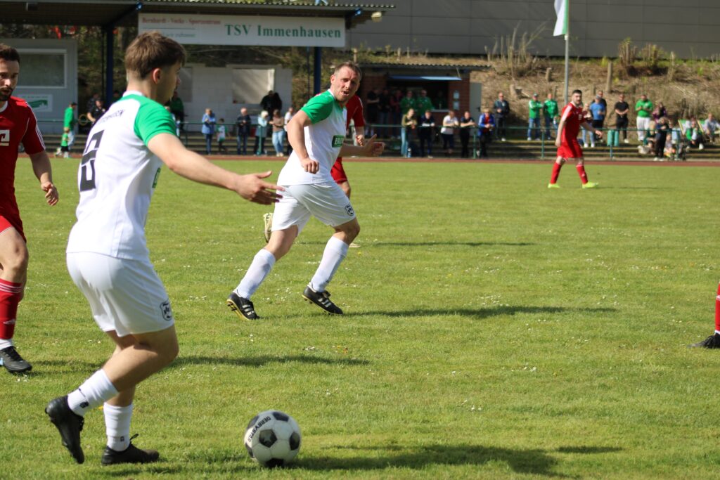 Die TSV Immenhausen hat sich nach einem intensiven und lange Zeit offenen Spiel mit 2:0 gegen den FSV Dörnberg II durchgesetzt. Während die erste Halbzeit ein wildes Hin und Her mit Chancen auf beiden Seiten war, verdiente sich die TSV den Sieg durch eine klare Steigerung nach dem Seitenwechsel.