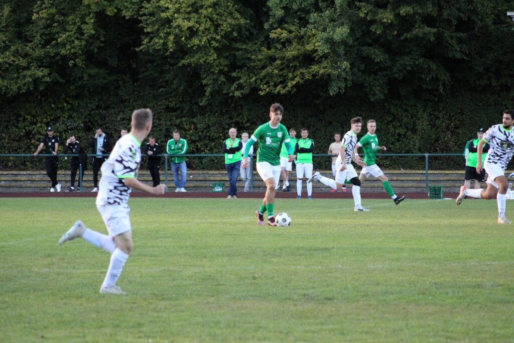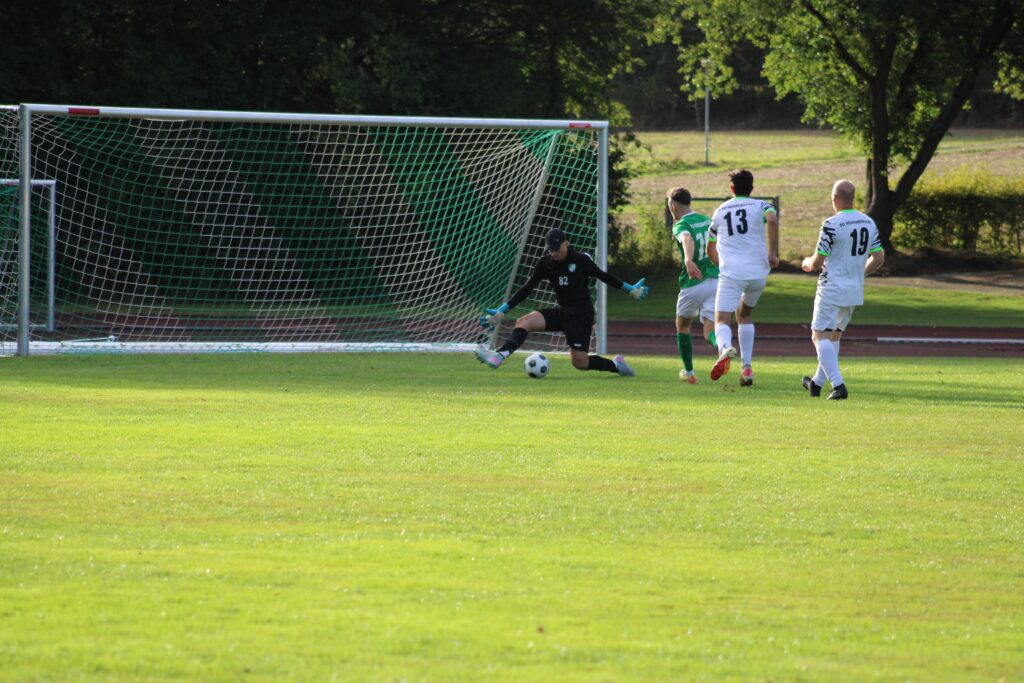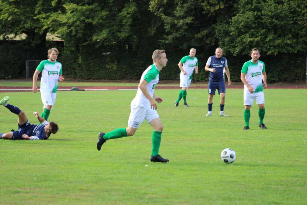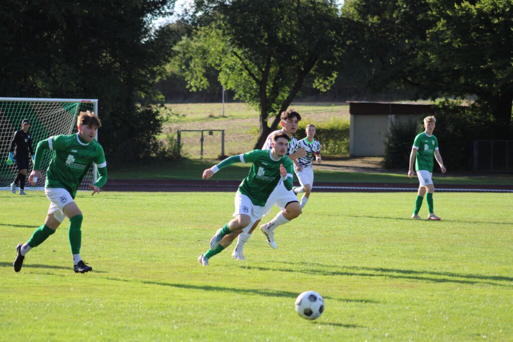 Die Partie begann ausgeglichen. Beide Mannschaften standen zunächst defensiv kompakt, sodass es in den ersten Minuten keine klaren Torchancen gab. Die erste nennenswerte Offensivaktion brachte dann gleich die Führung für die Gäste: Nach einem Ballverlust im Mittelfeld spielte Bromm einen präzisen Ball über die Abwehr, Wehrmann startete durch und schob ins lange Eck zum 0:1 ein (14.).