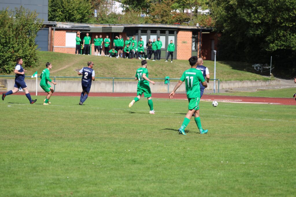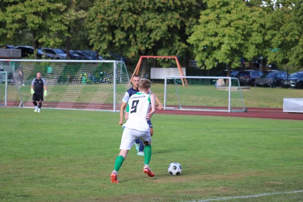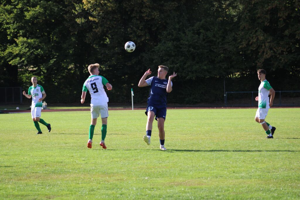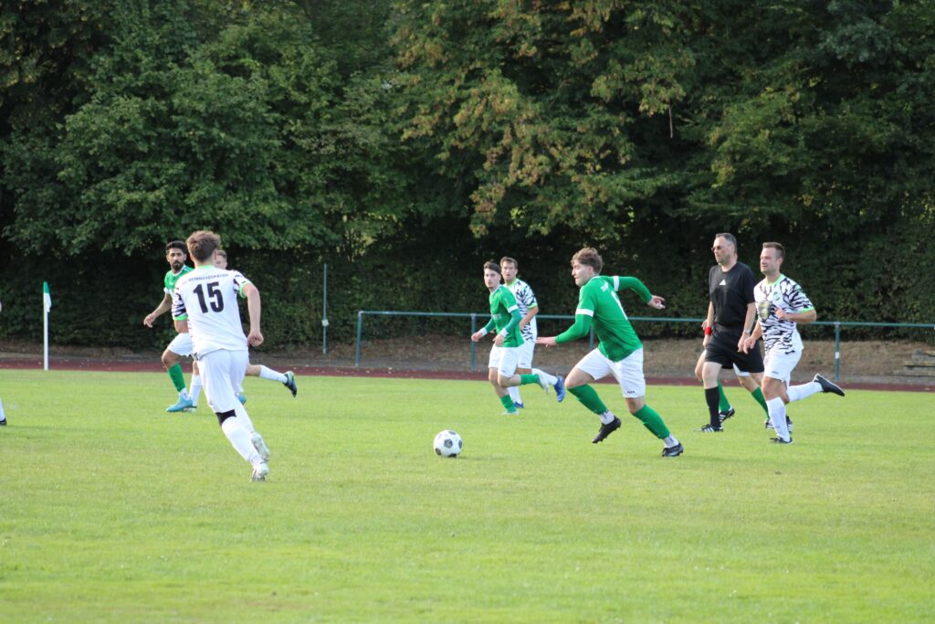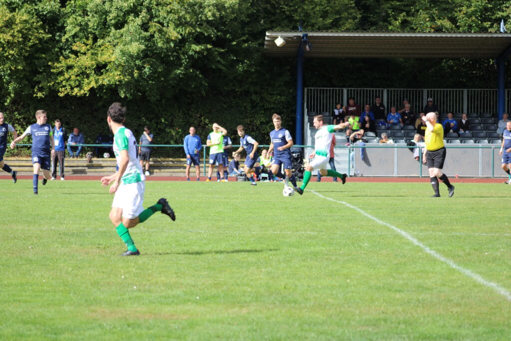 Die Partie begann ausgeglichen. Beide Mannschaften standen zunächst defensiv kompakt, sodass es in den ersten Minuten keine klaren Torchancen gab. Die erste nennenswerte Offensivaktion brachte dann gleich die Führung für die Gäste: Nach einem Ballverlust im Mittelfeld spielte Bromm einen präzisen Ball über die Abwehr, Wehrmann startete durch und schob ins lange Eck zum 0:1 ein (14.).