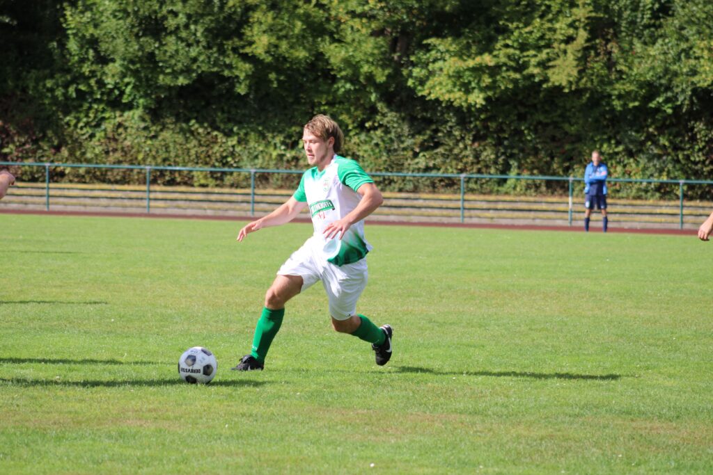 Die Partie begann mit einer ausgeglichenen ersten halben Stunde, in der sich beide Teams im Mittelfeld neutralisierten und kaum gefährliche Torchancen zustande kamen. Dann jedoch kam die TSV insbesondere über die linke Seite besser ins Spiel und Adrian Handel scheiterte gleich zweimal am Gästekeeper Frederik Jünger. Aller guten Dinge sind bekanntlich drei und so verwandelt er in der 35. Minute seine dritte Chance eiskalt, nachdem er durch einen feinen Außenristpass von Luca Marinho da Costa frei vor dem Tor auftauchte.