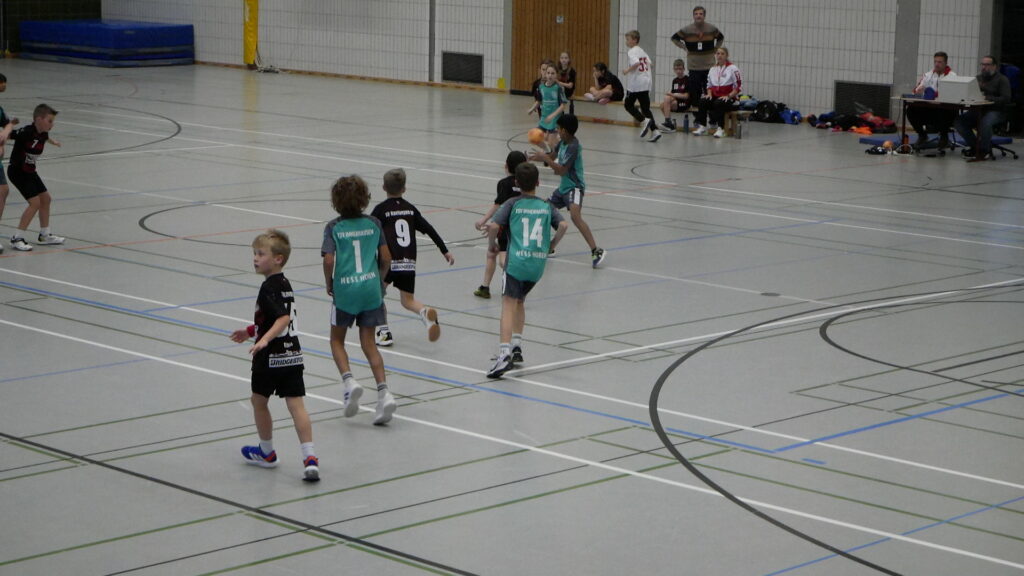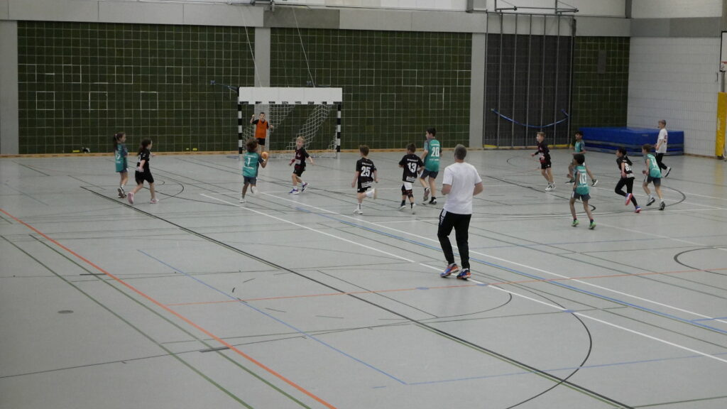 Der Start ins Spiel verlief alles andere als ideal: In der Abwehr wurde etwas geträumt, im Angriff wollten die Bälle einfach nicht ins Tor – stattdessen traf man lieber den Torwart oder gleich die Wand. Doch nach einer Auszeit und einer kleinen taktischen Umstellung platzte endlich der Knoten! Die Abwehr stand nun stabil, und im Angriff fielen endlich die Tore. Nur zwei Minuten später sah sich auch der Gastgeber gezwungen, eine Auszeit zu nehmen. Doch unsere Kids blieben dran und spielten selbstbewusst weiter.